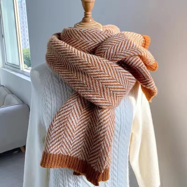 Feature: The scarf has a delicate handfeel, soft and elastic, with natural soft colors. Comfortable and warm.