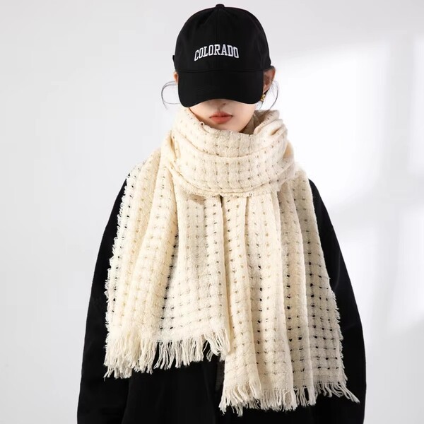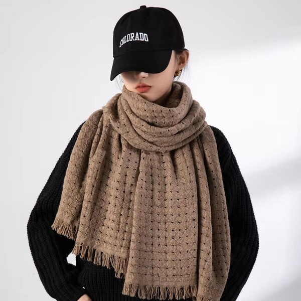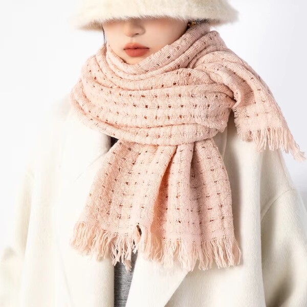 Feature: The scarf has a delicate handfeel, soft and elastic, with natural soft colors. Comfortable and warm.