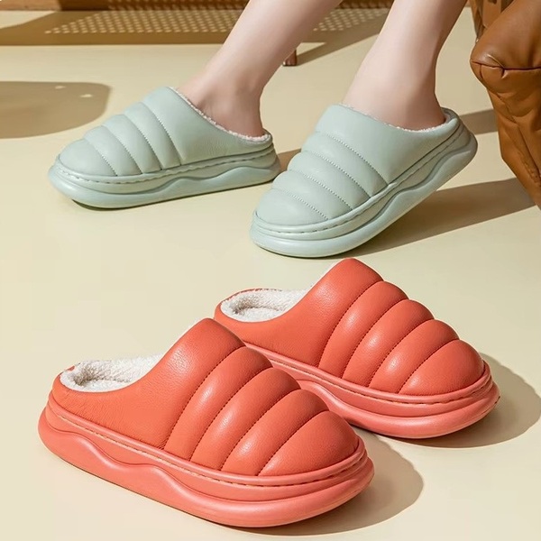 Detail for 16 Pairs Womens Winter Leather Indoor Warm Slippers: