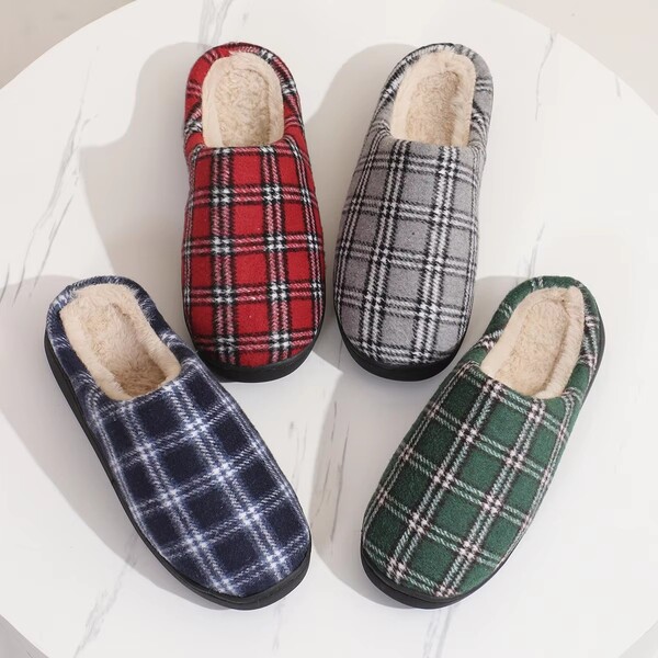 40 Pairs Winter Plaid Printed Cotton Slippers