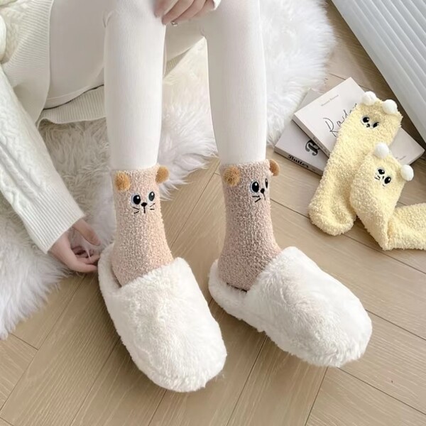 10 Pairs Women Winter Thick Cat Pattern Coral Velvet Socks