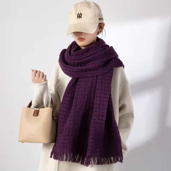 2Pcs Womens Fashion Knitted Large Plaid Scarf